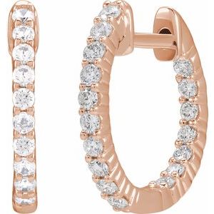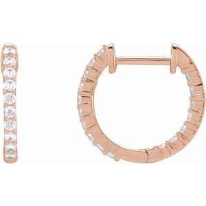 14K Rose 1/2 CTW Natural Diamond Inside-Outside Hinged 14.5 mm Hoop Earrings