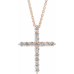 14K Rose 3/4 CTW Lab-Grown Diamond Cross 16-18" Necklace