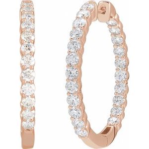 14K Rose 3 CTW Natural Diamond Inside-Outside Hinged 30 mm Hoop Earrings