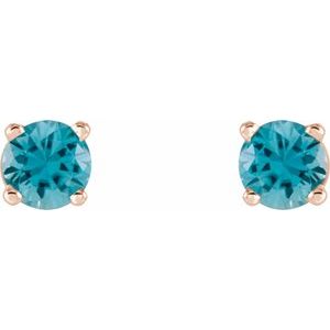 14K Rose 4 mm Natural Blue Zircon Stud Earrings