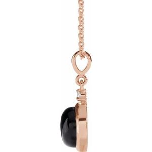 14K Rose 6 mm Natural Black Onyx & .03 CT Natural Diamond Cabochon 16-18" Necklace