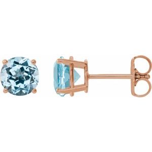 14K Rose 6 mm Natural Sky Blue Topaz Stud Earrings