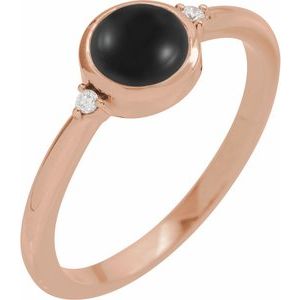 14K Rose 6 mm Round Natural Black Onyx & .03 CTW Natural Diamond Ring