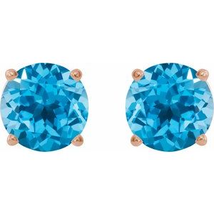14K Rose 8 mm Natural Swiss Blue Topaz Stud Earrings