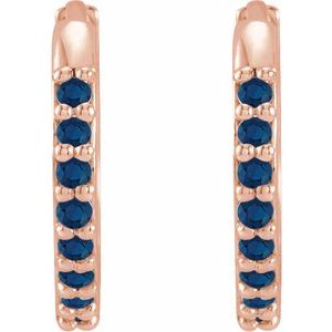 14K Rose Lab-Grown Blue Sapphire Hinged 12.5 mm Hoop Earrings