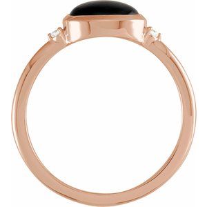 14K Rose10x8 mm Round Natural Black Onyx & .03 CTW Natural Diamond Ring