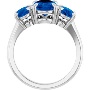 14K White 8x6 mm Oval Lab-Grown Blue Sapphire Three-Stone Ring