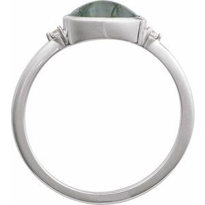 14K White Natural Moss Agate & .03 CTW Natural Diamond Ring