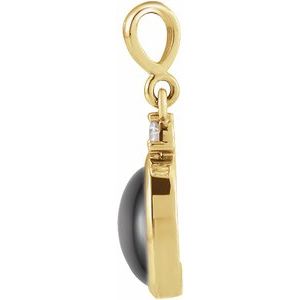 14K Yellow 12x10 mm Natural Black Onyx & .03 CT Natural Diamond Cabochon Pendant