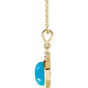 14K Yellow 6 mm Natural Turquoise & .03 CT Natural Diamond Cabochon 16-18" Necklace