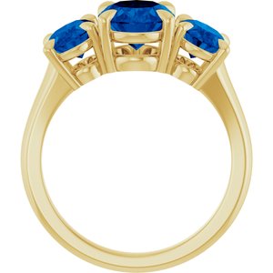 14K Yellow 9x7 mm Oval Lab-Grown Blue Sapphire Three-Stone Ring