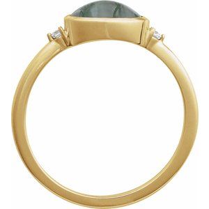 14K Yellow Natural Moss Agate & .03 CTW Natural Diamond Ring
