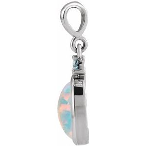 Platinum 6x4 mm Lab-Grown White Opal & Natural London Blue Topaz Pendant