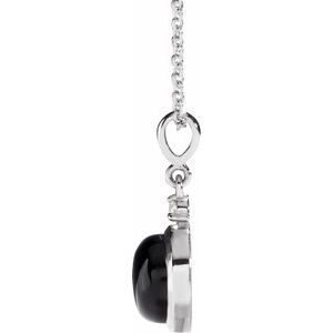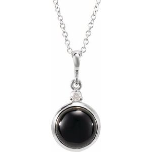 Platinum 8 mm Natural Black Onyx & .03 CT Natural Diamond Cabochon 16-18" Necklace