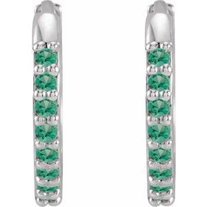 Platinum Lab-Grown Emerald Hinged 12.5 mm Hoop Earrings