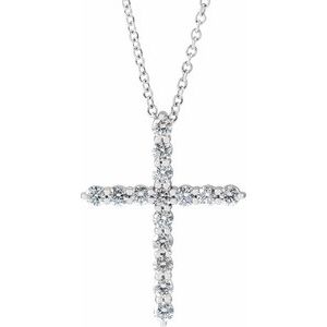 Sterling Silver 3/4 CTW Natural Diamond Cross 16-18" Necklace