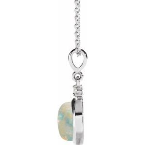 Sterling Silver 6 mm Natural White Opal & .03 CT Natural Diamond Cabochon 16-18" Necklace