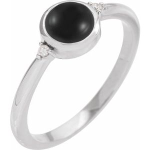 Sterling Silver 6 mm Round Natural Black Onyx & .03 CTW Natural Diamond Ring