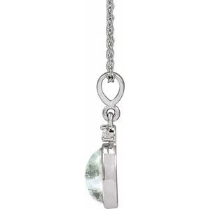 Sterling Silver 8x6 mm Natural Moss Agate & .03 CTW Natural Diamond 16-18" Necklace