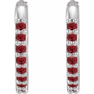 Sterling Silver Lab-Grown Ruby Hinged 12.5 mm Hoop Earrings